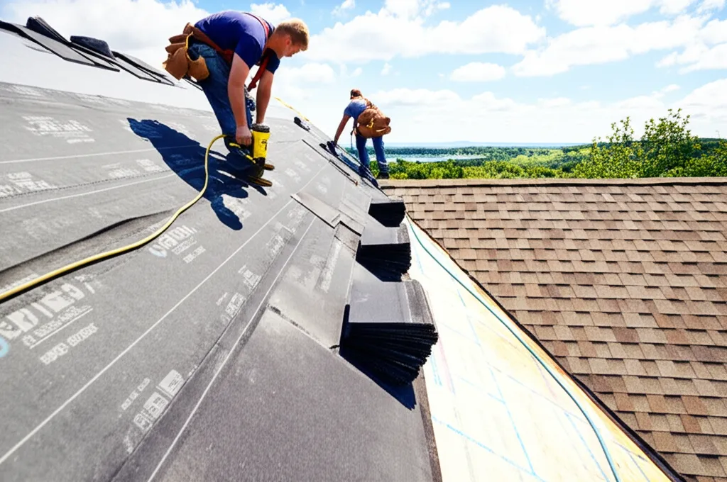 Notre équipe de couvreurs expérimentés procède à l'installation de votre nouvelle toiture en suivant les meilleures pratiques de l'industrie et en respectant les normes de sécurité.