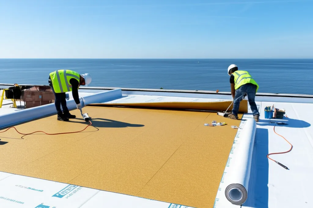 Solution idéale pour les toits plats ou à faible pente, offrant une excellente étanchéité et une grande durabilité. Parfaite pour les propriétés commerciales et certaines résidences modernes.